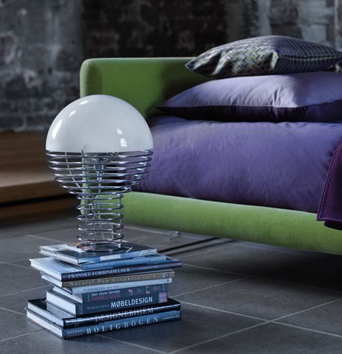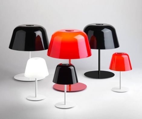 Verpan ne propune o colectie de lampi foarte haioase cu support metalic in forma unui arc, acoperite cu capace lacuite in culori vesele. Se potrivesc de minune in interioare contemporane sau moderne