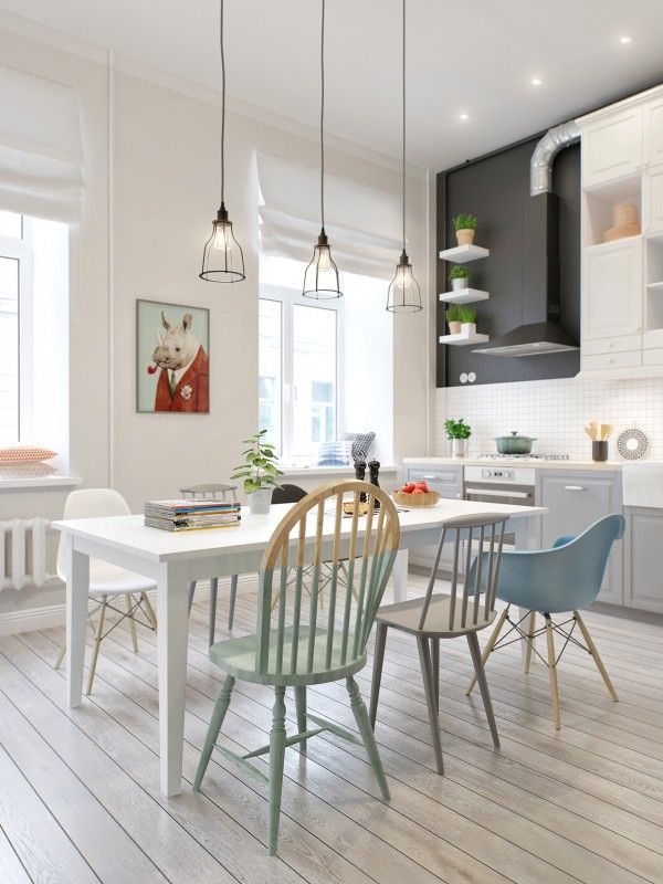 Obiectele de arta si scaunele eclectice ofera acestui dining in tonuri de gri o personalitate aparte. Scaunele pictate numai pe jumatate pot fi o sursa placuta de petrecere a timpului liber in weekend. Nu ai nevoie decat de o cutie de vopsea si o pensula. Efectul va fi spectaculos!