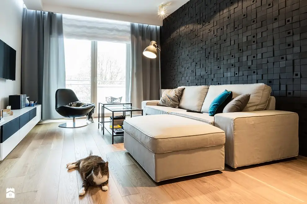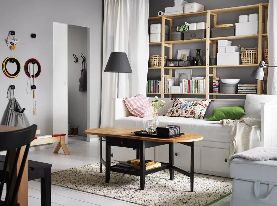 Pastreaza amenajarea livingului cat mai aerisita posibil si nu aglomera cu mobilier! In cele mai multe cazuri, o canapea, masuta de cafea, cateva rafturi sau o biblioteca din corpuri modulare sunt suficiente pentru aceasta incapere. In plus, piesele de mobilier nu trebuie sa fie toate lipite de perete. Cel mai bun exemplu este canapeaua.