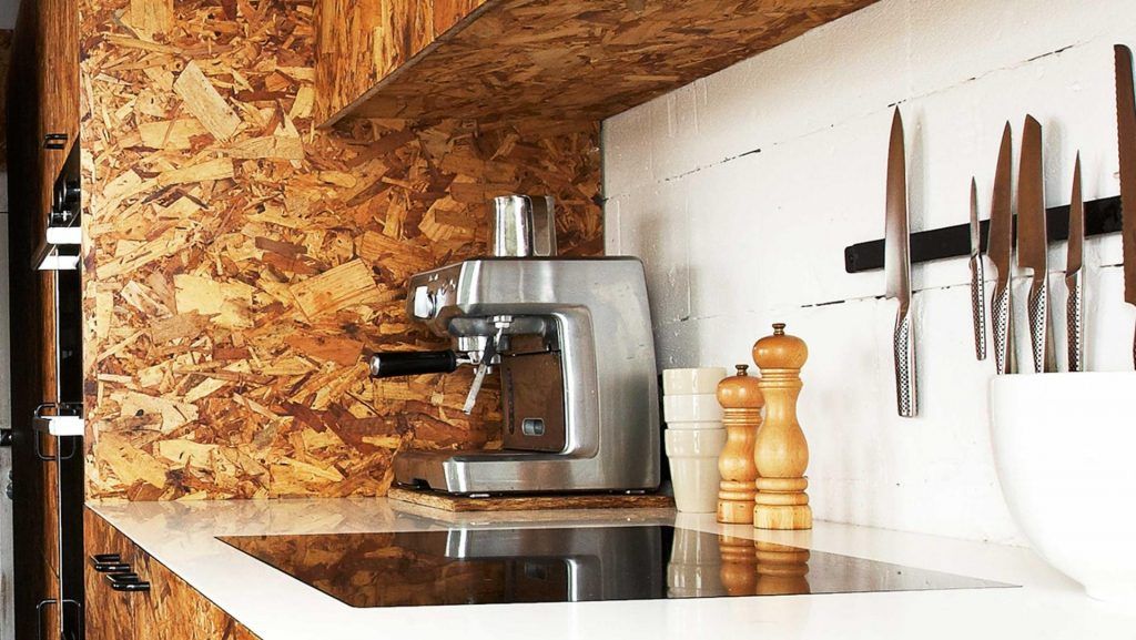 Ustensile agatate pe o bara speciala, fixata in perete. Excelent efectul creat in aceasta bucatarie!