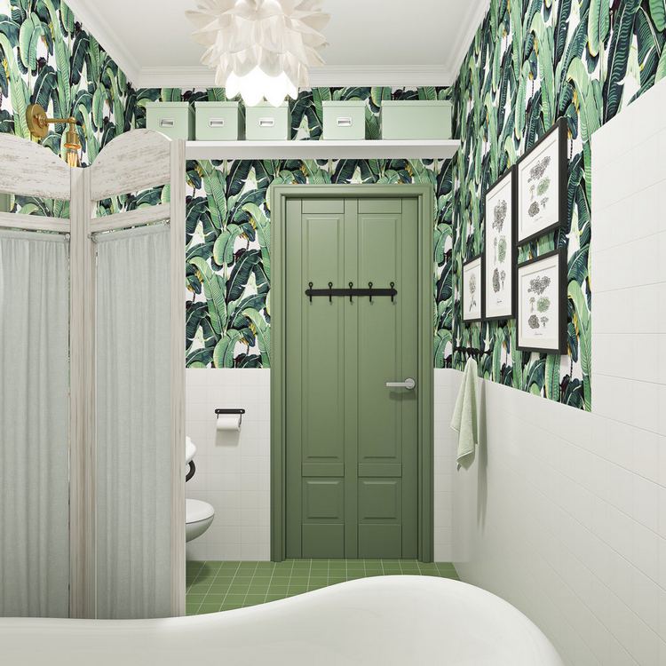 Tapetul cu imprimeu tropical poate fi prea mult intr-un spatiu mic, ingust sau slab iluminat.