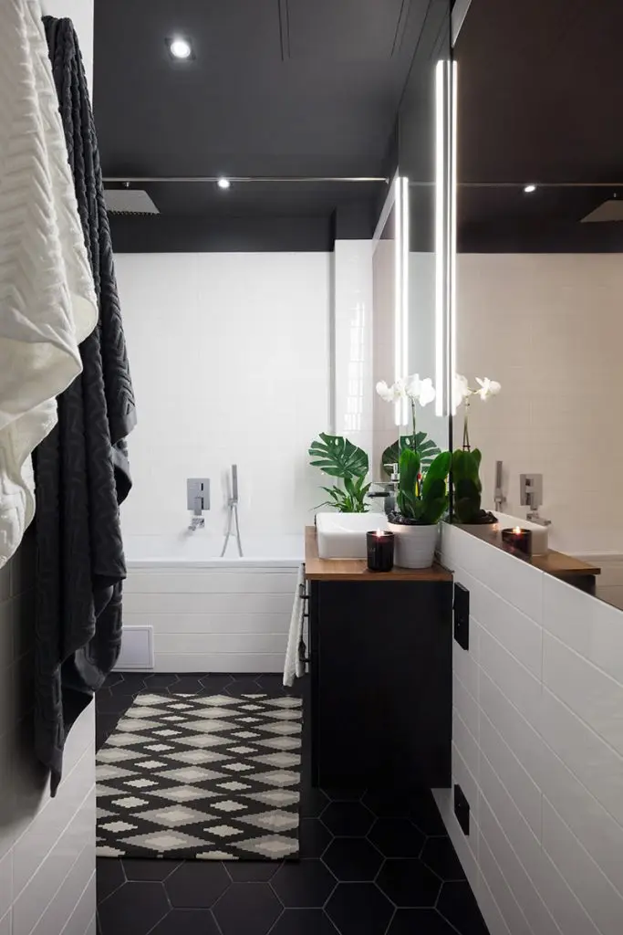 Suprafata tavanului din baie vopsita in negru! Efect dramatic!