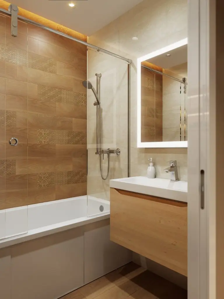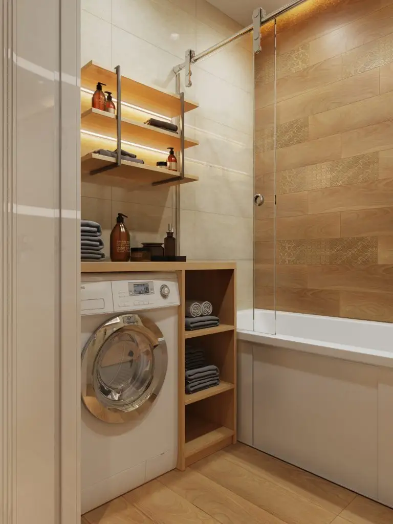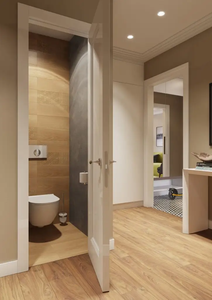 Ne-au atras atentia si baile, una din ele fiind o toaleta de serviciu. Cu siguranta vei gasi idei numai bune de pus in aplicare: in baia principala, au fost amenajate spatii pentru a stoca diverse lucruri chiar si sub cada, sub forma unor usi mici culisante. Ne place si corpul care include masina de spalat si locul pentru prosoape.