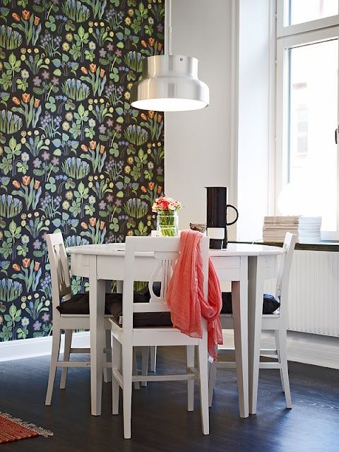 Exista si alte metode prin care poti pune in valoare spatiul dining-ului. Poti folosi un tapet cu un model care sa puna in valoare ca functiune distincta aceasta zona a casei. Acest lucru se poate aplica si in bucatarie. De asemenea un tablou supradimensionat sau o colectie de tablouri cu motive abstracte pot fi o metoda originala pentru a crea un decor de impact. In imediata apropiere poate fi instalata o piesa tip consola sau o comoda care sa faca legatura intre spatii si in acelasi timp sa fie utilizata si ca depozitare de farfurii, tacamuri sau fete de masa si servete.
