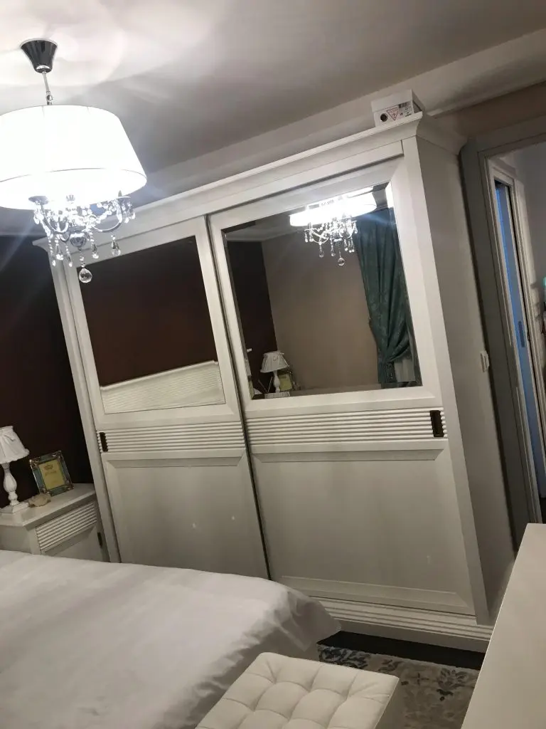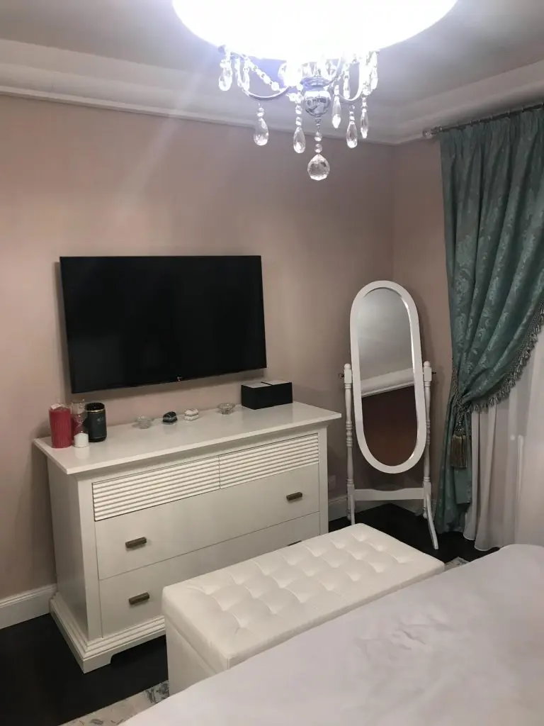 In cazul dormitorului, accentele de culoare exprimate mural si textil participa la crearea unui ambient relaxant din punct de vedere vizual. Alexandra a ales un mobilierul cu design clasic, compus dintr-un pat dublu central, doua noptiere, o comoda, o oglinda cu suport si un dressing supradimensionat, ce ajuta la maximizarea confortului, dar in acelasi timp oferind incaperii functionalitate.