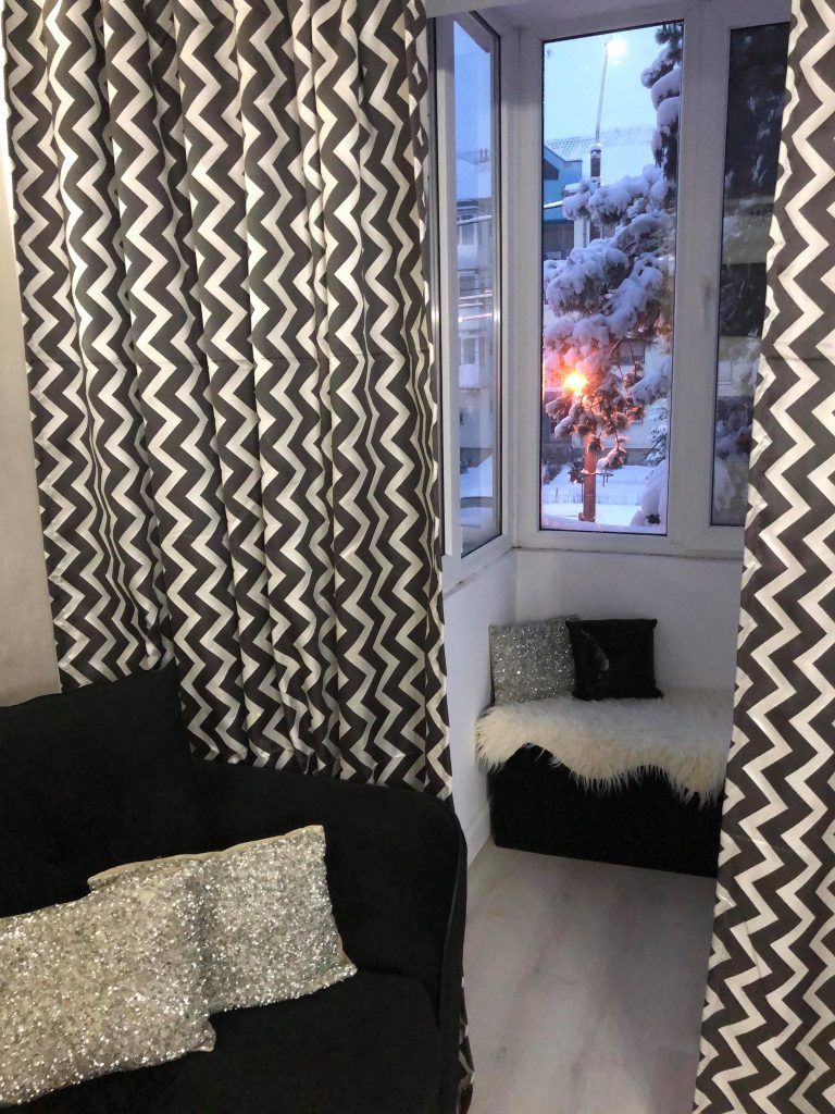 Balconul vine in prelungirea intregului spatiu si, ascuns in spatele unor draperii cu motive geometrice, se metamorfozeaza intr-un mic loc de relaxare.Remarcat se face de altfel si design-ul mural, atat in cazul bucatariei, cat si al living-ului. Daca in zona de pregatire a mesei acesta este evidentiat cu ajutorul benzilor de led pozitionate sub corpurile superioare ale mobilei, in zona de relaxare nu se poate lasa neobservat datorita semineul electric pe care il incastreaza.