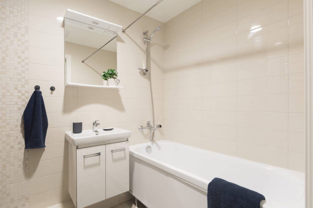 Din punct de vedere estetic, pentru baie, vorbim de o paleta coloristica modesta, fara prea multe accente de culoare, la care se adauga un mobilier practic si compact pentru a oferi spatialitate si o iluminare adecvata..Holul si balconul sunt doua dintre zonele care capata insemnatate in cazul unui apartament de mici dimensiuni. Amplasarea de spatii de depozitare si relaxare in componenta acestora, ofera omogenitate intregii locuinte, transformand-o intr-un intreg.