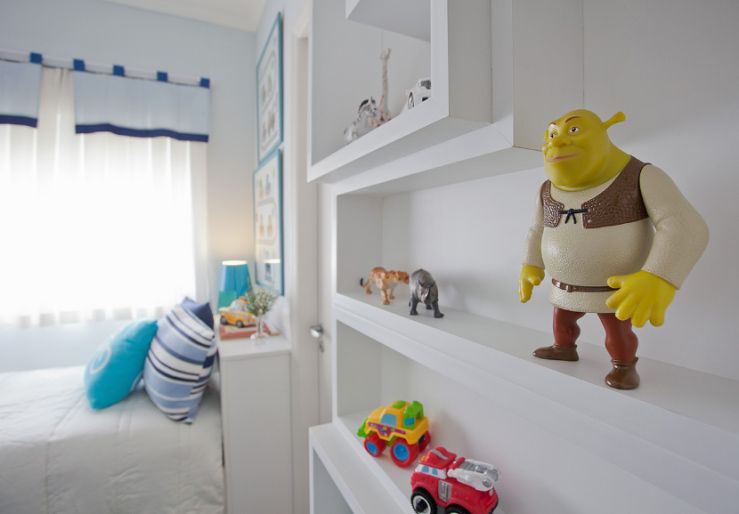 Spatiile de depozitare au fost bine gandite. De la dulapul pentru haine, pana la sertare si o nisa folosita pentru cutii cu jucarii sau biblioteca cu un design ingenios, fiecare din lucrurile copilului isi gaseste locul in camera intr-un mod armonios.