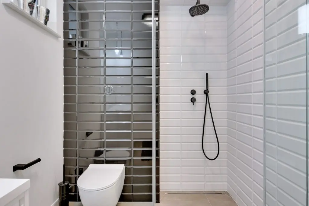 Exact atunci cand ai crezut ca ai inteles pe deplin mesajul transmis de aceasta amenajare, faci cunostiinta cu baia, spatiul care are la baza un design bazat pe cele doua non-culori principale.