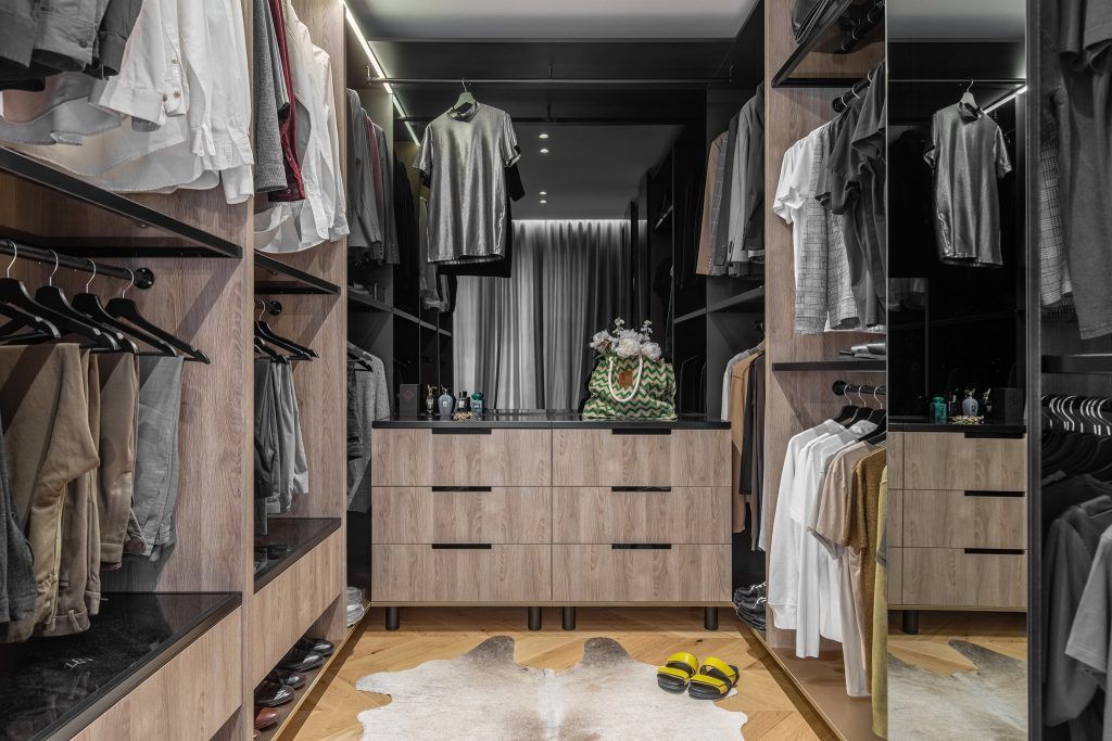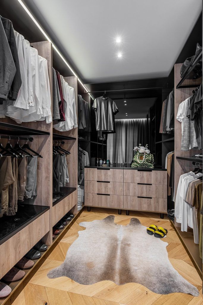 Personalizarea si realizarea pieselor la comanda joaca un rol esential in povestea acestei amenajari. De la parchetul model chevron, alea carui piese au fost taiate special, la C NC, dupa dimensiunile necesare , la tot ce inseamna mobilier tapitat si spatii de depozitare.