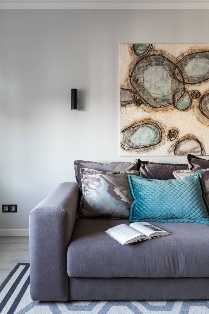 Din punct de vedere functional, pervazul este transformat intr-un spatiu destinat activitatilor de birou, venind si el in continuarea povestii prin accesorizarea minimalista. Spatiul de relaxare este reprezentat de o canapea dubla, accesorizata cu multe perne, in spatele careia se regaseste un tablou abstract, asortat perfect cu toate elementele textile.