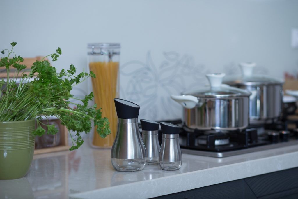 Si in ce priveste depozitarea putem fi la fel de creativi. Recipiente metalice, de sticla combinate cu lemn sau recipiente transparente pentru paste sau zahar, seturi pentru condimente, iata doar cateva idei prin care putem reda o nota distinsa unui aspect atat de banal precum depozitarea.