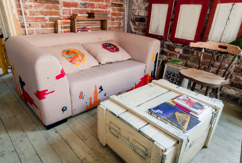Am facut un mix intre obiecte de mobilier din zestrea familiei cu mobila veche reciclata din fostul hostel Counting Crows, piese de mobilier de la expozitia Ebenist Maler organizata de Andrei Argaetic de Noaptea Alba a Galeriilor 2011 si diverse obiecte salvate din uzine si ateliere parasite sau demolate.