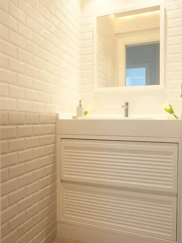 Caramida vopsita in alb confera textura peretilor, iar luminile-accent pun in valoare aceasta trasatura, oferind un plus de caldura si lumina spatiului. Deschiderea zonei de zi sporeste senzatie de amplitudine si luminozitate.
