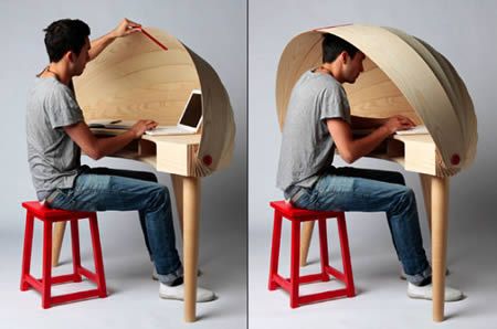 Iti place sa ai parte de intimitate atunci cand lucrezi, dar totusi, sunt foarte multi oameni in jurul tau si acest lucru nu iti permite sa te concentrezi? Biroul-scoica sau biroul-cochilie este exact ceea ce iti trebuia pentru a te izola atunci cand iti doresti sa lucrezi la capacitate maxima. Singurul dezavantaj al acestui birou foarte creativ este faptul ca exista sansa sa arati ca un melc in timp ce iti tragi “cochilia” peste tine, iar de aici poate porni o intreaga serie de porecle pe care le vei primi de la colegii de birou.