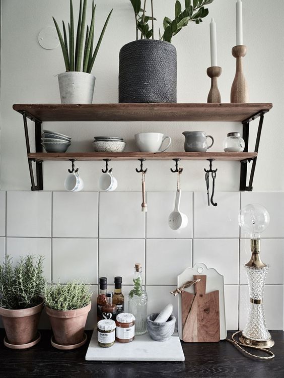 Rafturile cu aspect vintage sunt realizate din otel, nu ies prea mult in evidenta si sunt suporturi perfecte pentru condimentele si ustensilele necesare in bucatarie. Cutiile din lemn sau simplele ladite pot fi montate pe pereti in diverse moduri, reinventand astfel ideea rafturilor traditionale.
