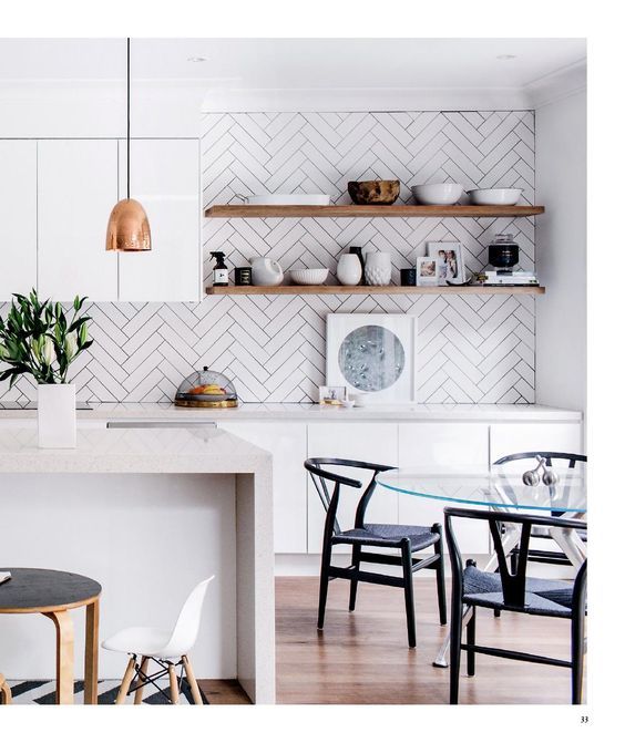 Rafturile suspendate pot aduce valoare bucatariei, pastrand vasele si paharele la vedere. Pentru un aspect lejer, poti elimina volumul oferit de dulapurile inchise in favoarea unor rafturi suspendate care ofera suficient spatiu pentru stocare.
