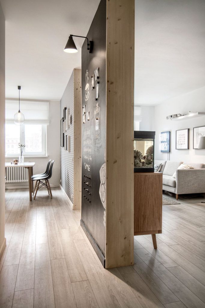 Amenajarea acestui apartament cu 2 camere este realizata intr-un stil scandinav, pe placul tinerilor nonconformisti care sunt mereu pe fuga, sunt pasionati de jobul lor si de calatorii, dar tin foarte mult si la timpul de relaxare de acasa sau de serile de weekend impreuna cu prietenii, in sufragerie.