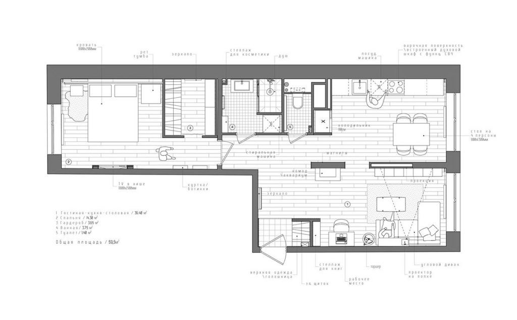 In locul televizorului a fost ales un videoproiector. Asa ca, daca aveti liber peretele din fata canapelei, cu un proiector puteti sa va faceti un mini-cinema in living.