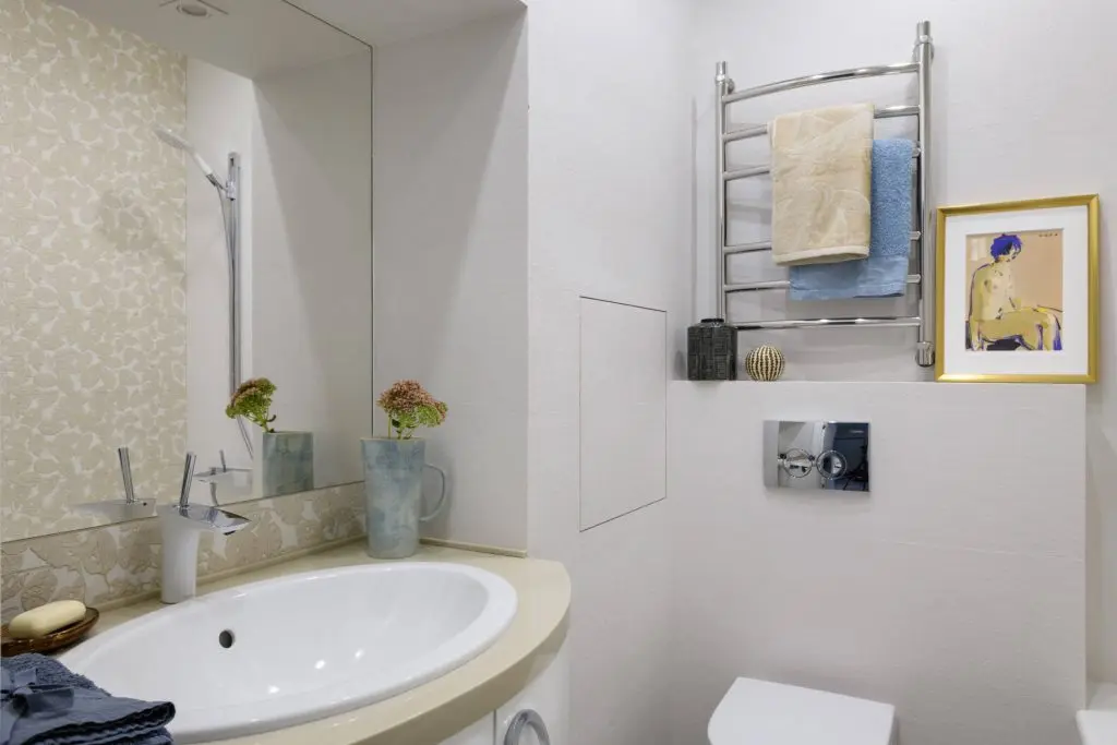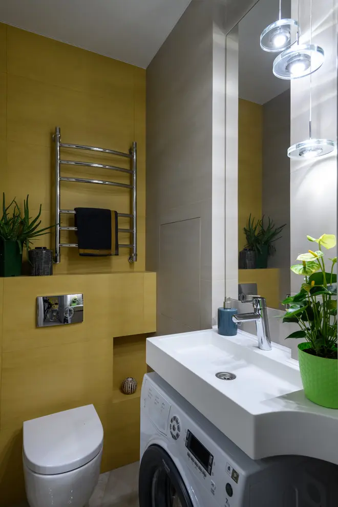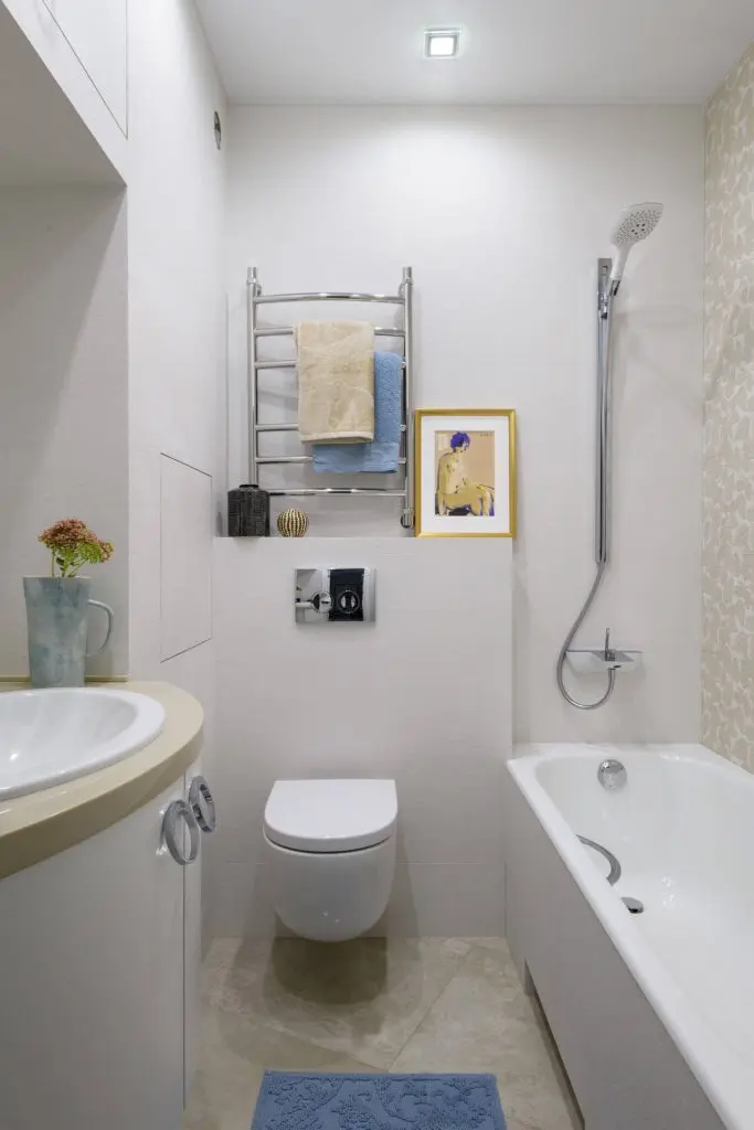 Baia pune accent pe unitate si functionalitate. Abundenta albului reuseste sa amplifice vizual spatiul iar simplitatea mobilierului contribuie la exploatarea maxima a spatiului.
