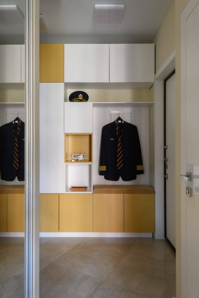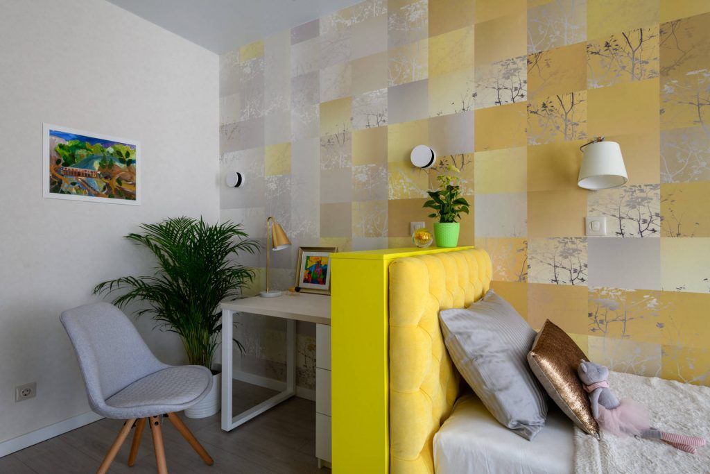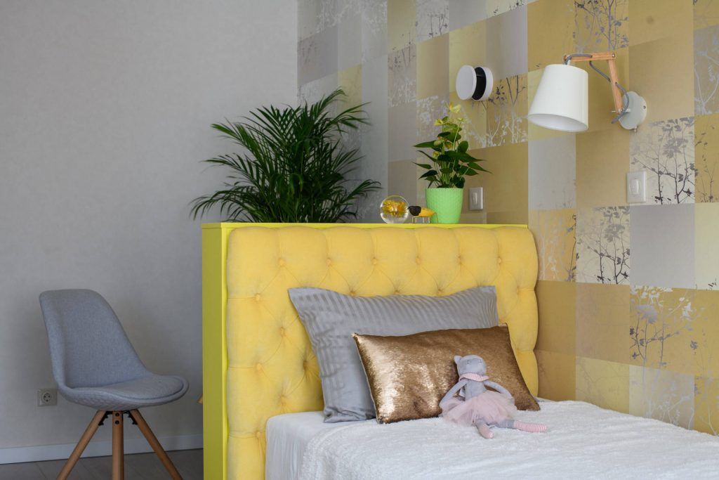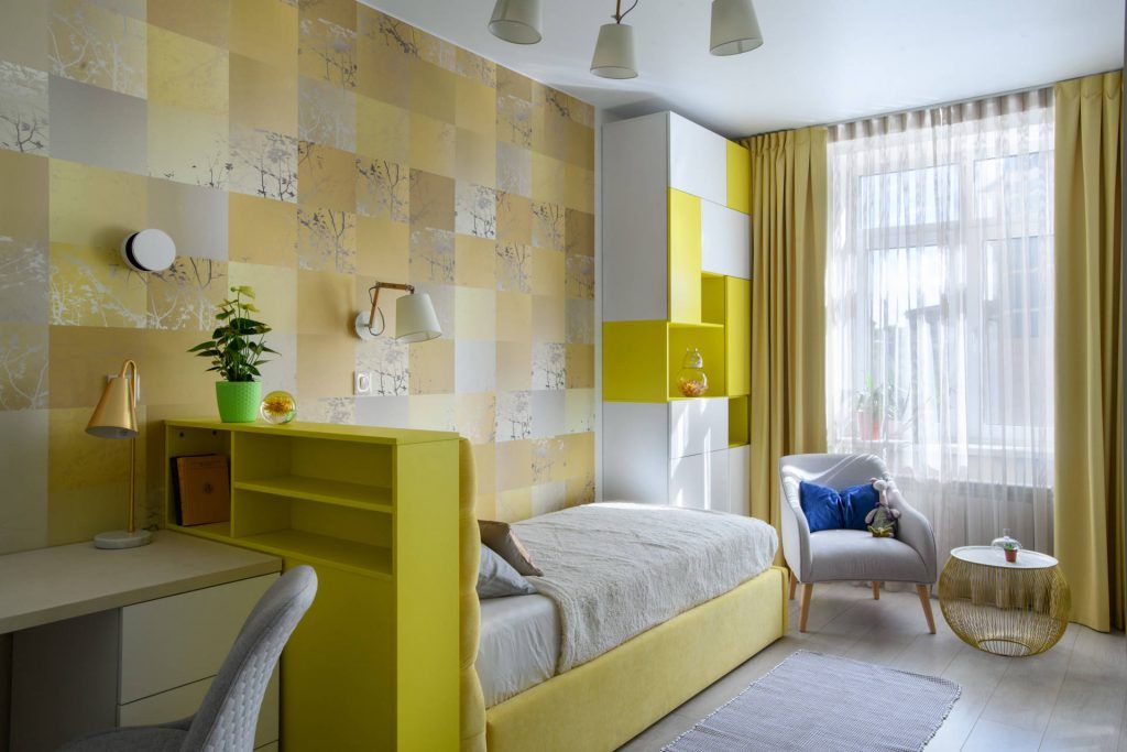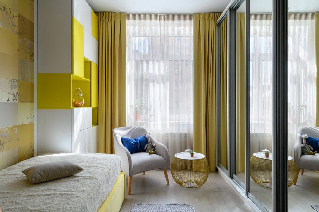 Dormitorul fetitei este amenajat dupa gustul si personalitatea ei. Camera este luminoasa, colorata si vesela. Galbenul reuseste sa aduca energie si o nota personala intregului interior. Suprafata camerei a permis amenajarea a trei zone importante: zona de dormit, de lectura si de relaxare. Un pat micut, cu tablia captusita cu textil de culoare ocupa centrul peretelui iar restul pieselor de mobilier: un birou pentru lucru si un corp de mobila cu rol de biblioteca au foste pozitionate in jurul acestuia. In plan paralel este amenajat un dresing incastrat pe intregul perete. Pentru un plus de spatialitate, sunt montate oglinzi pe usile culisante ale acestuia, astfel lumina se reflecta si mareste vizual spatiul.