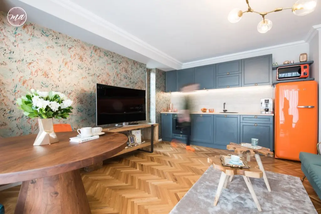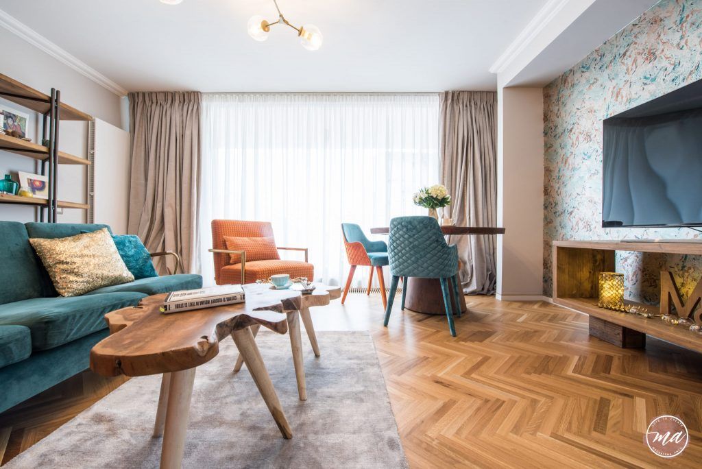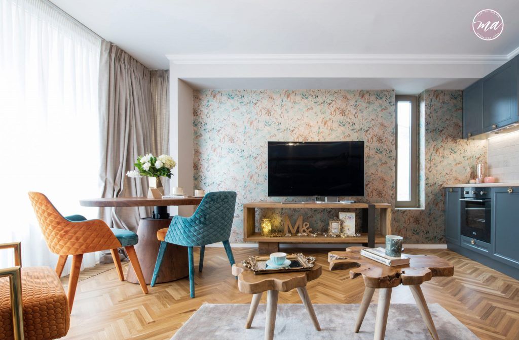 Povestea acestei amenajari este una speciala, intrucat se face remarcata atat printr-o deosebita combinatie de stiluri cat si prin amplasarea apartamentului intr-un bloc premiat la Anuala de Arhitectura din 2018 (celebrul bloc Occidentului 40 din Bucuresti).