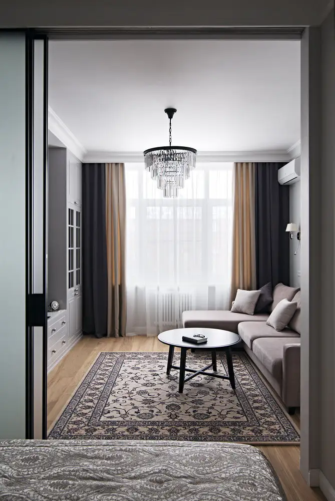 O distributie spatiala moderna, putin neconventionala, mobilier si elemente decorative cu influente clasice. Este povestea unui apartament de doua camere din St. Petersburg transformat intr-un studio cu living luminos si bucataria deschisa, plus un dormitor retras, cu acces din living, amplasat in locul dressingului anterior.