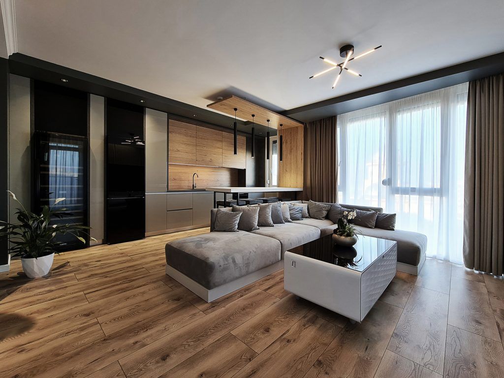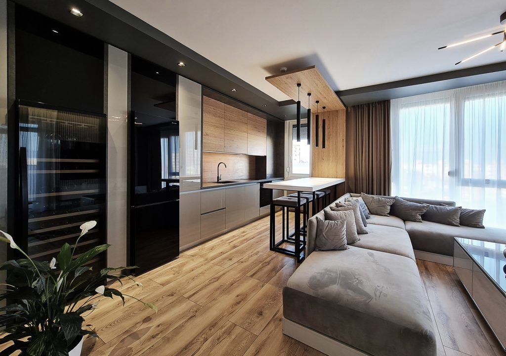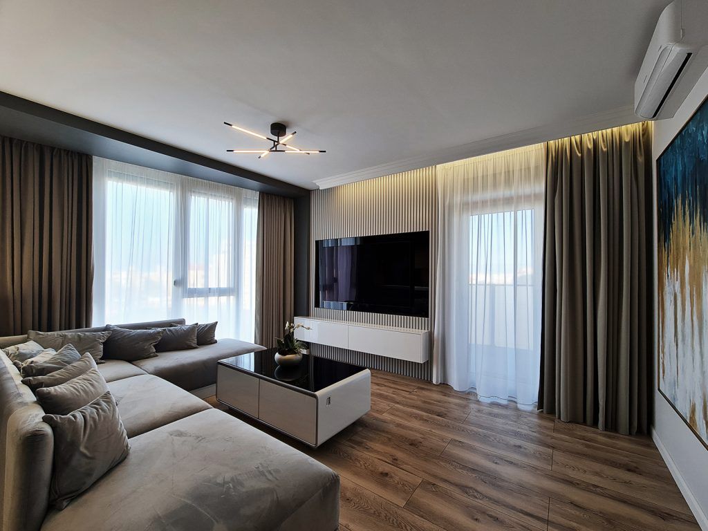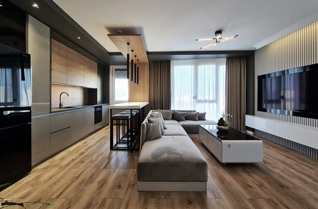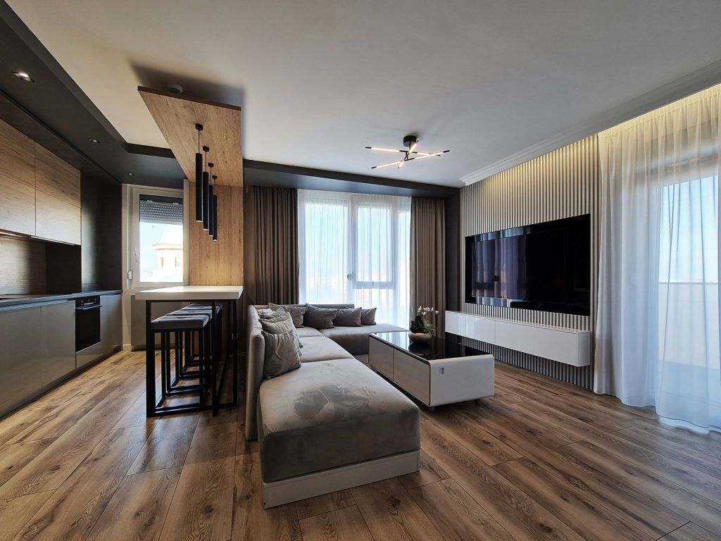 Amenajare apartament trei camere in stil contemporan cu multe accente de lemn