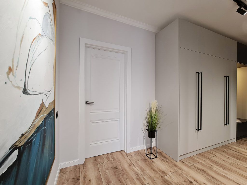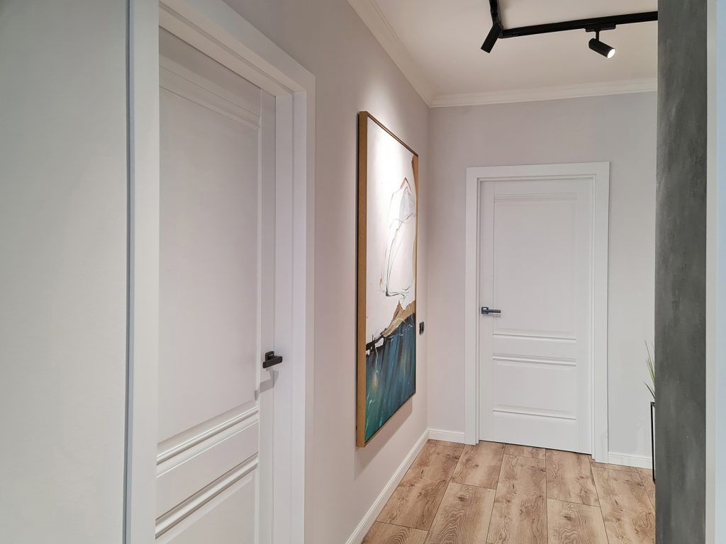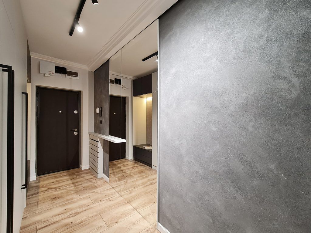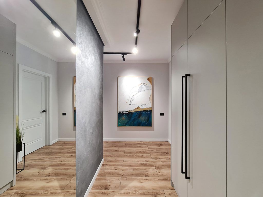 Accesul in apartamentul decomandat cu trei camere si doua bai se realizeaza printr-un coridor ingust, care are acum si rol de depozitare si primire eleganta a oaspetilor.