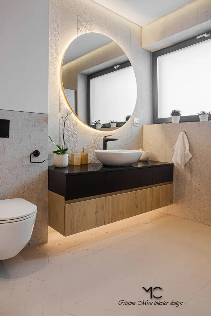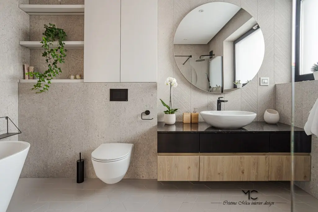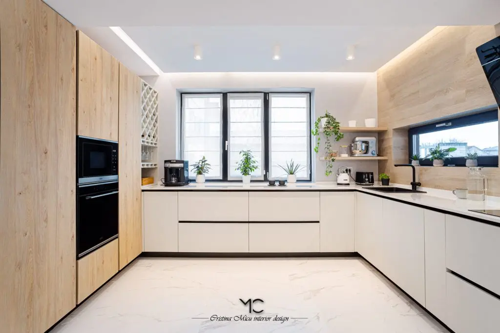 Locuinta era in constructie, la rosu, in momentul inceperii proiectului de amenajare, proiect care a durat in jur de trei luni (cu doate detaliile atent analizate si proiectate, lista de finisaje si mobilier pregatite). Cu tot cu implementarea proiectului, locuinta a fost gata intr-un an, finalizata in 2021.
