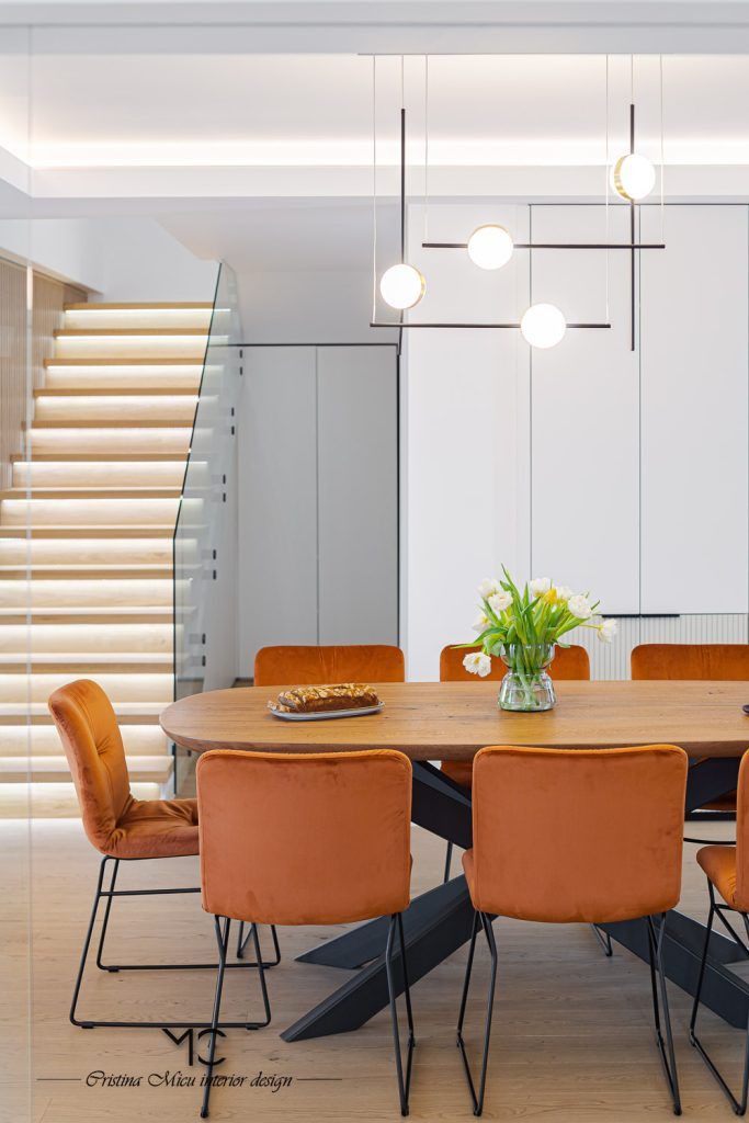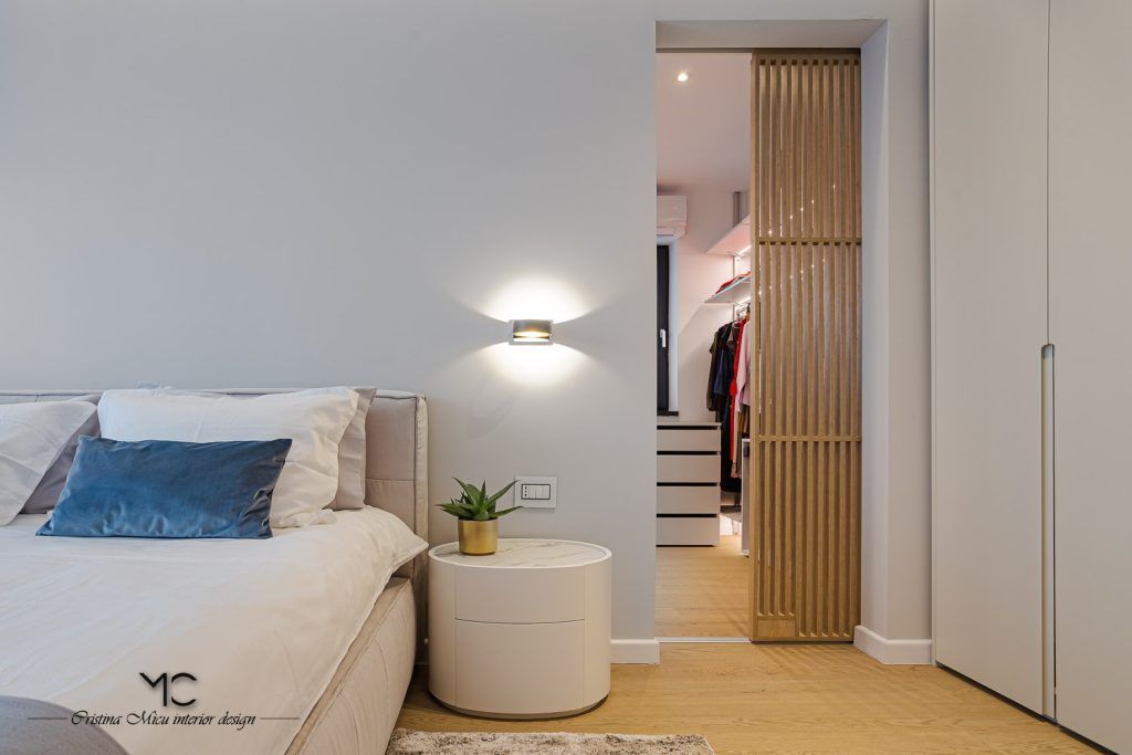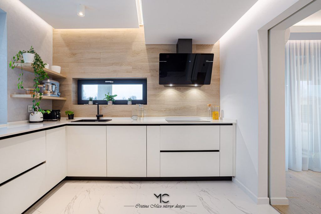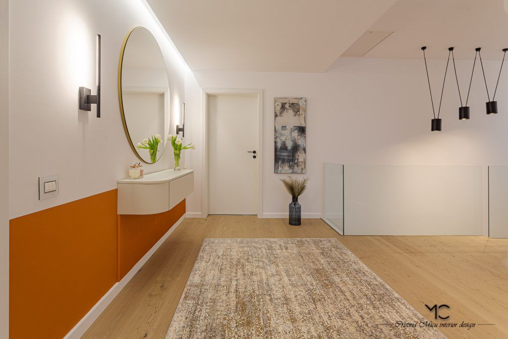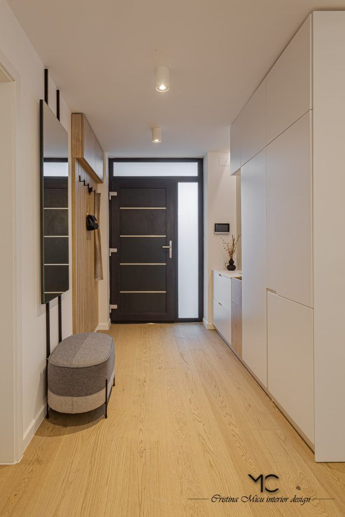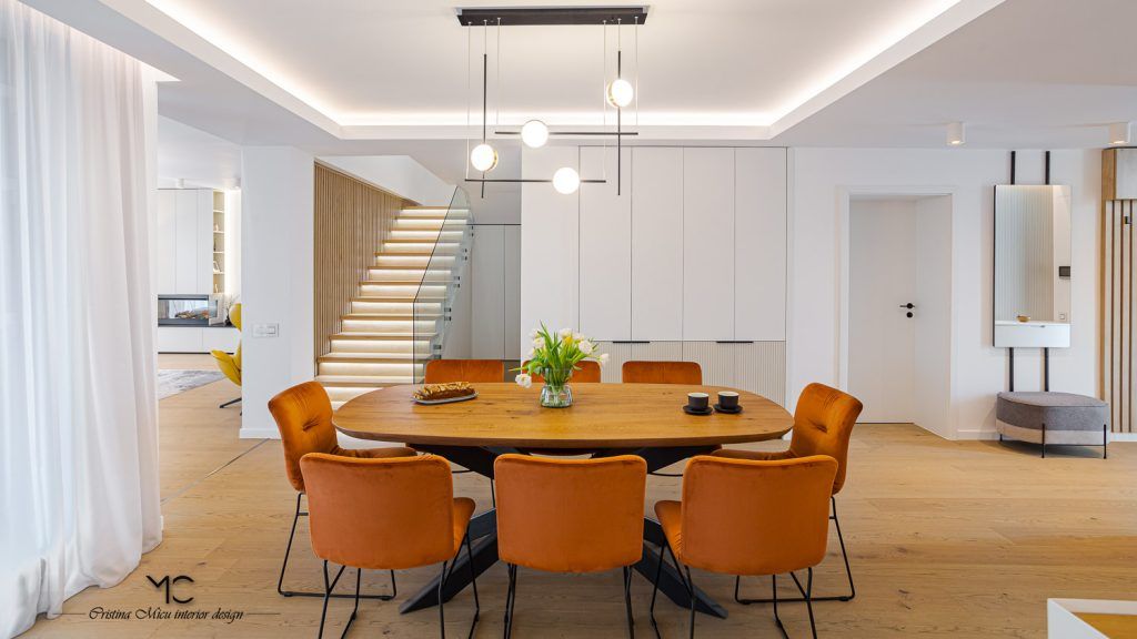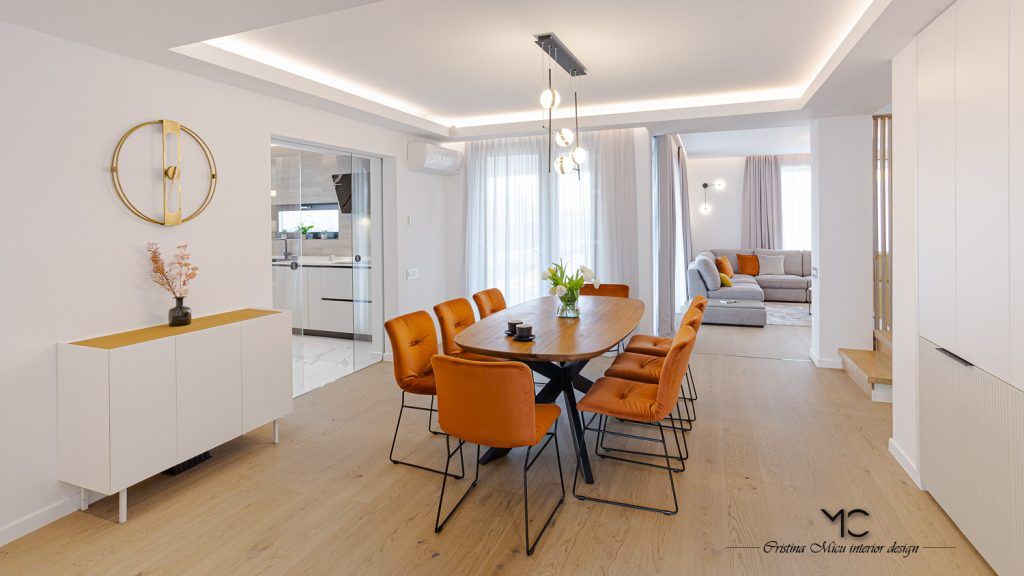 Locuinta era in constructie, la rosu, in momentul inceperii proiectului de amenajare, proiect care a durat in jur de trei luni (cu doate detaliile atent analizate si proiectate, lista de finisaje si mobilier pregatite). Cu tot cu implementarea proiectului, locuinta a fost gata intr-un an, finalizata in 2021.