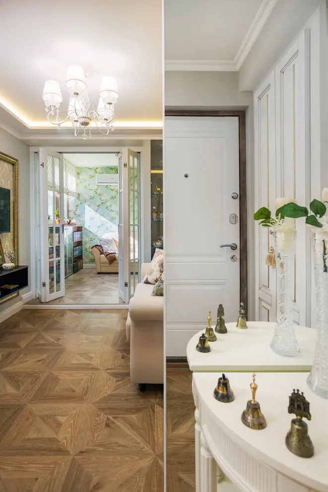 In cazul acestui apartament locuit de o familie de parinti pensionari, acest ideal al armoniei se atinge cu ajutorul unei amenajari clasice, elegante si cu accente moderne subtile.