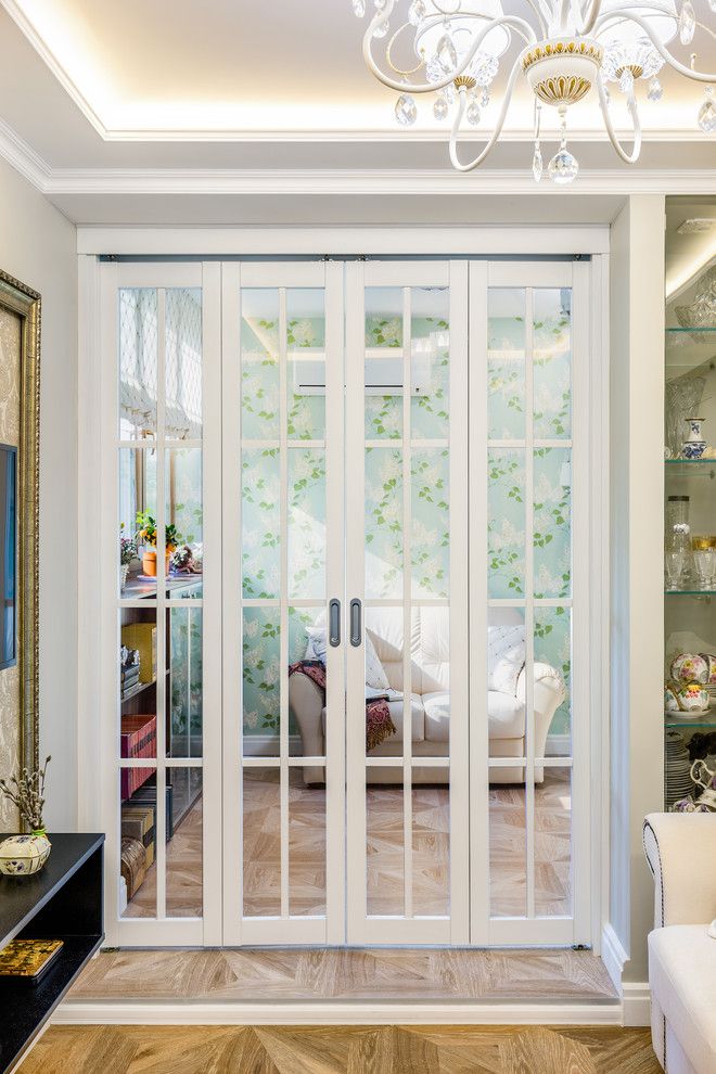 Largirea vizuala a spatiului si atribuiriea unui caracter practic, impart camera de zi in doua portiuni segmentate, separate cu ajutorul unui perete din sticla.