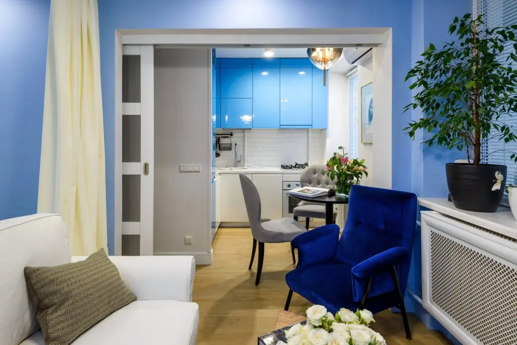 Configuratia este specifica unui apartament cu o singura camera, un open space ce include: bucatarie, living si dormitor. Cele 3 functiuni se contopesc intr-un spatiu deschis ce reflecta multa personalitate.