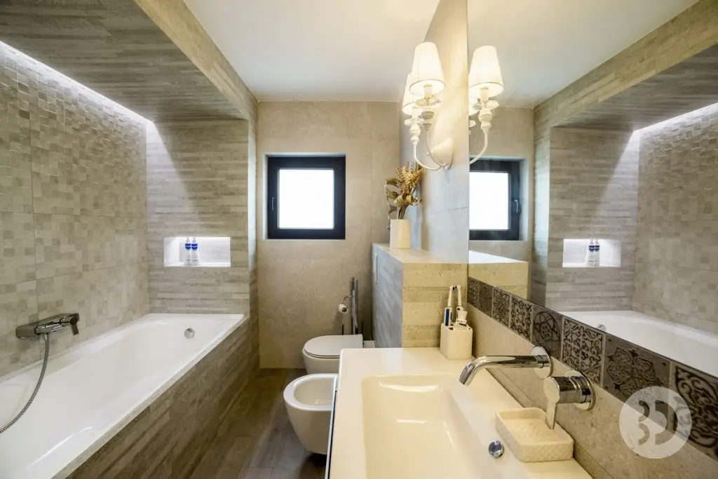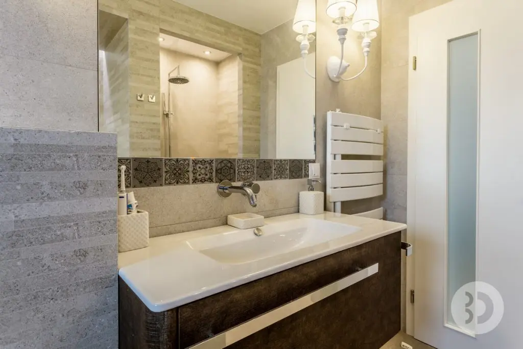 Si detaliile inovative nu se opresc aici. Aflam ca, in aceasta amenajare mesterii au realizat un lavoar functional dintr-o ceramica groasa de 3 mm pentru baie, dar si o chiuveta incapatoare pentru bucatarie tot din acelasi material ceramic extra-subtire si deosebit de solid.