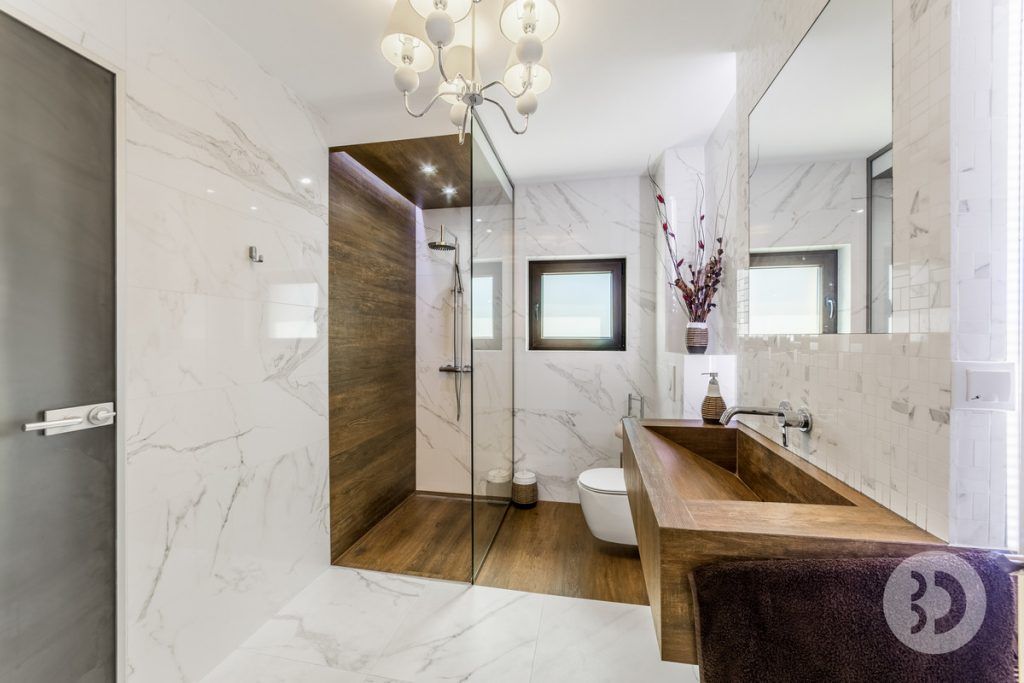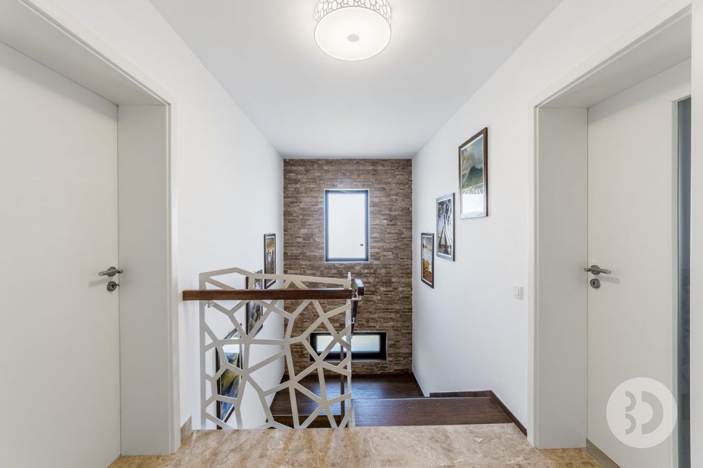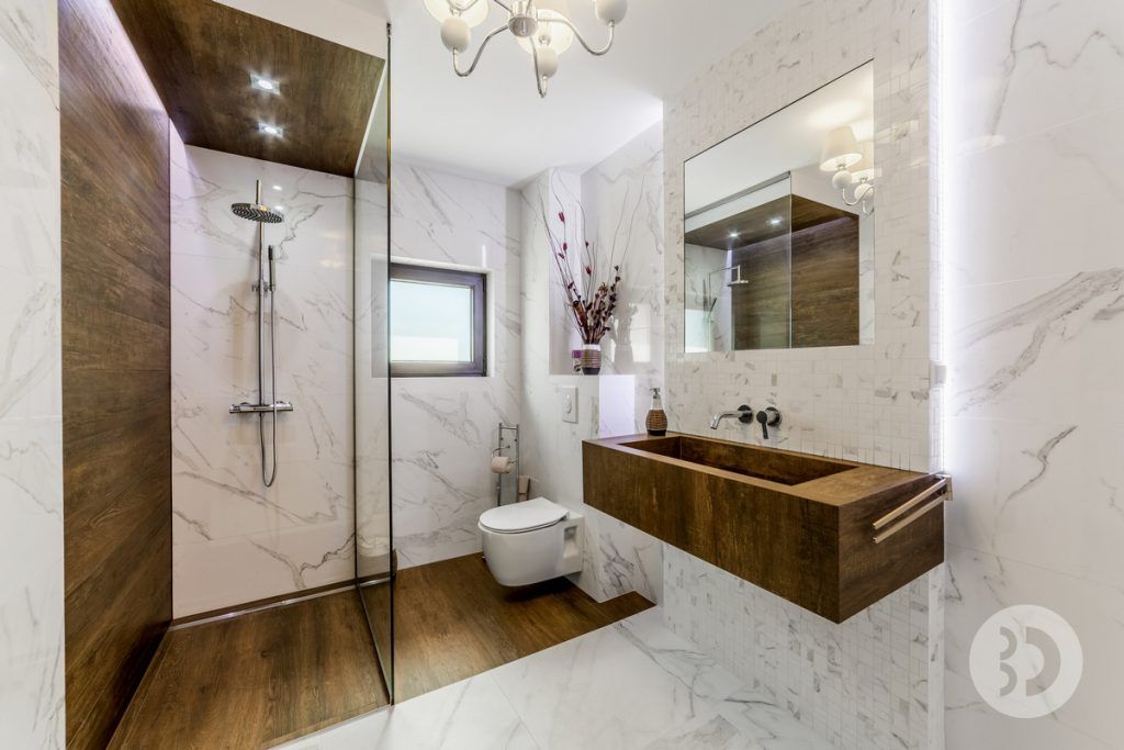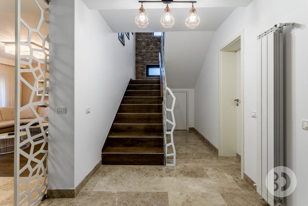 “Respectand dorintele cuplului, am incercat sa inserez mai multe tipuri de piatra, dar si ceramica, facand niste treceri armonioase intre texturi si culori. Predomina contraste intre materiale lucioase si mate, dar si cate un contrast de culoare pe fiecare zona principala. Am incercat sa pastrez liniile curate in toate spatiile casei si sa aduc un strop de caldura prin nuantele si materiale inspirate de natura.
