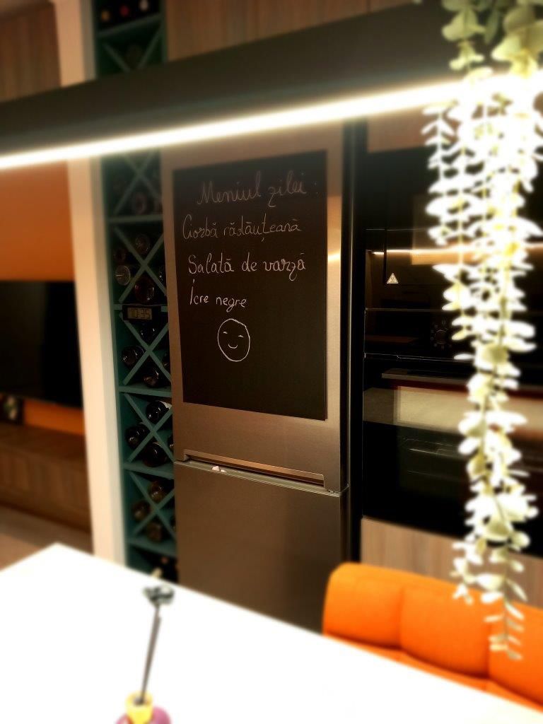 “Combina frigorifica Beko, cuptoarele de la Heinner, plita de la Hansa, chiuveta de la Pyramis, canapeaua Marbela (cu caracteristica pentru dormit noapte de noapte) de la Dumonde Sibiu (sunt foarte incantat de calitatea ei), masuta de cafea si puful gri de la jysk, montat pe un suport metalic facut de mine, masuta cu floare din colt este facuta dintr-un ghiveci de lut de la Ikea cu blatul de la o masuta de la Jysk pe care am vopsit-o in roz mat (picioarele masutei le-am pus la comoda de sub tv)” ne povesteste Catalin cu mult entuziasm.
