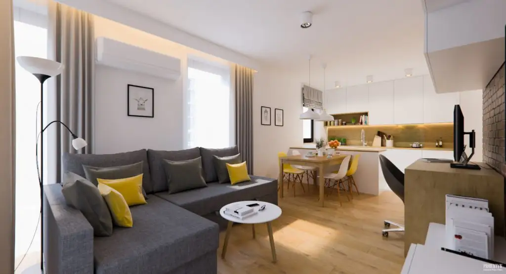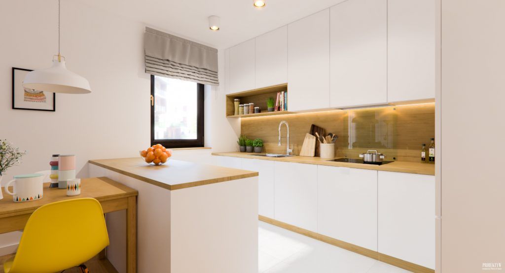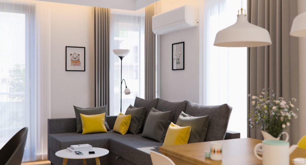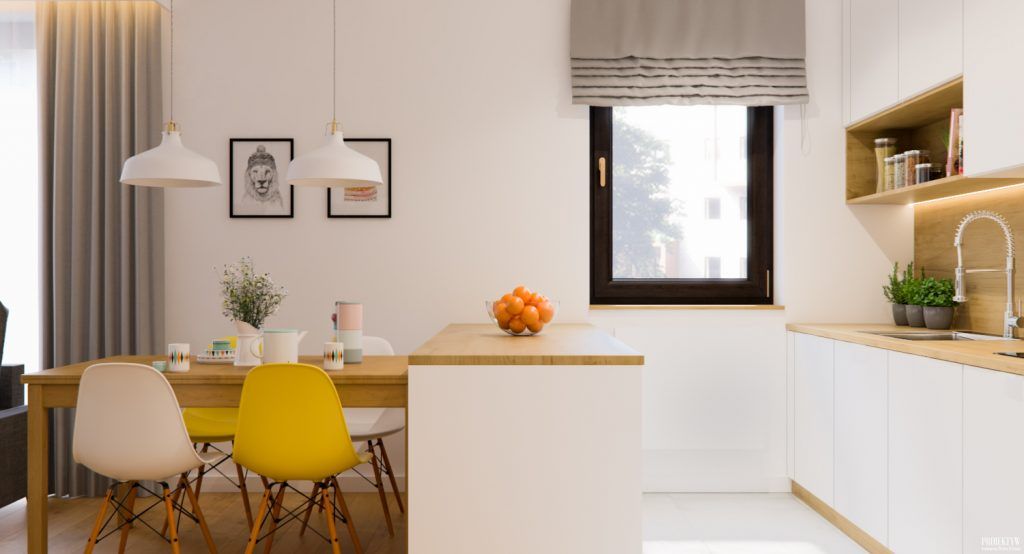 Cromatic, predomina albul si nuantele naturale de lemn, ce se imbina excelent la nivelul decorului, oferindu-i luminozitate si caldura in acelasi timp. Intalnim si neutre precum bej sau gri, dar si minunate accente de galben.