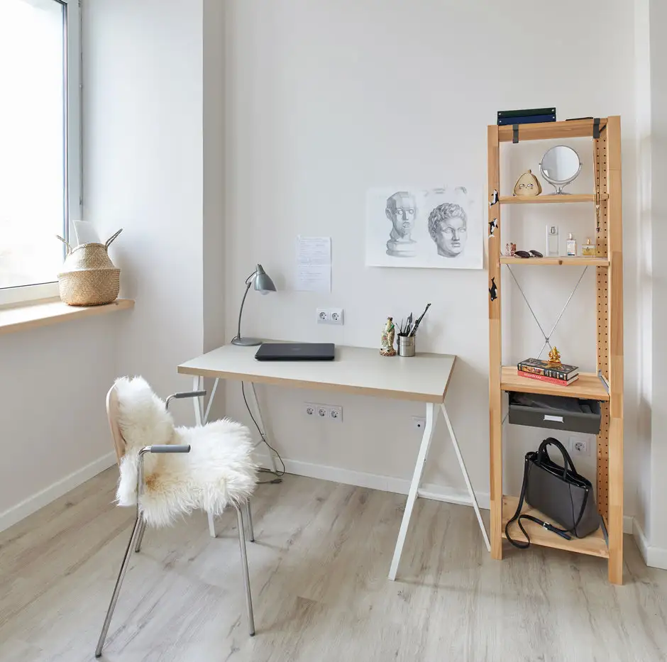 S-au gandit in primul rand la confort: un pat pentru dormit, un birou pentru teme si proiecte, un mic corp pentru depozitare, o masuta des folosita pe post de noptiera si un dulap in hol pentru haine si alte lucruri mai voluminoase.
