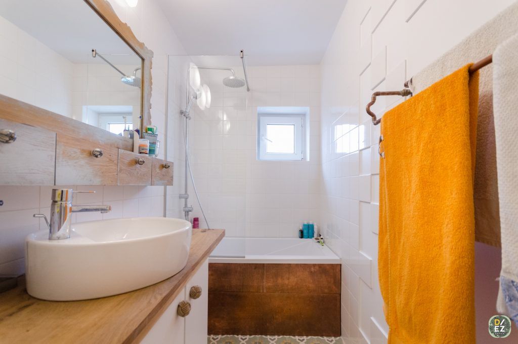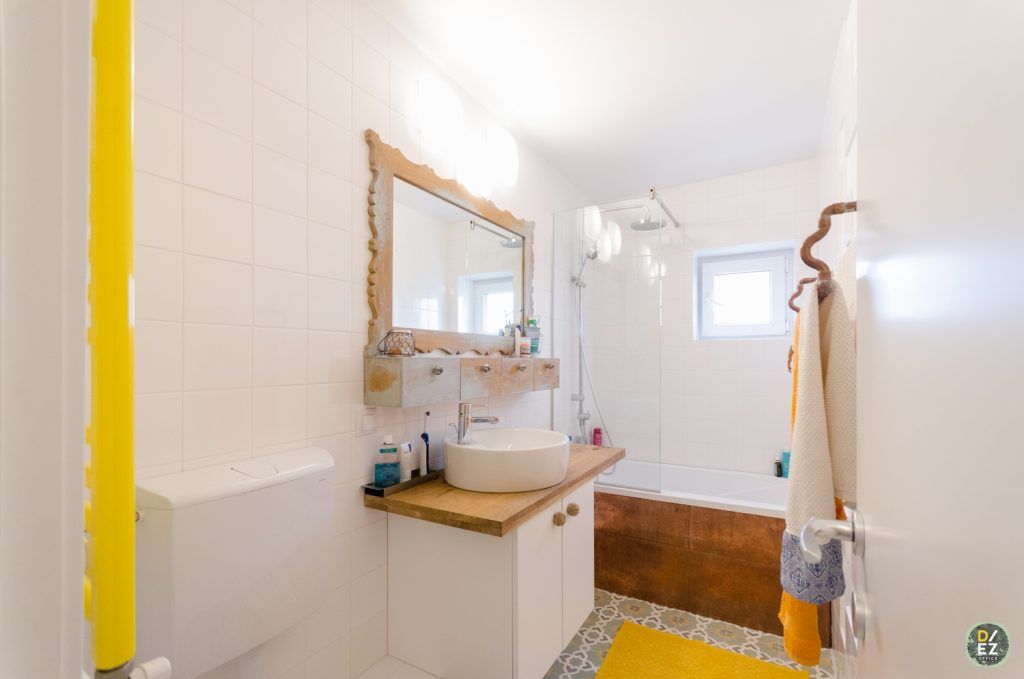 Pe masura ce lucrarile au inaintat, Oana a facut cateva modificari din propunerile initiale. Asa a aparut motivul cuprului pe care il vei gasi inserat in diverse locuri din apartament: tevile care se racordeaza la coloane, picioarele biroului, masuta din living, suportul de prosoape sau masca pentru cada din baia matrimoniala. De aici si denumirea proiectului: apartamentul Copper.