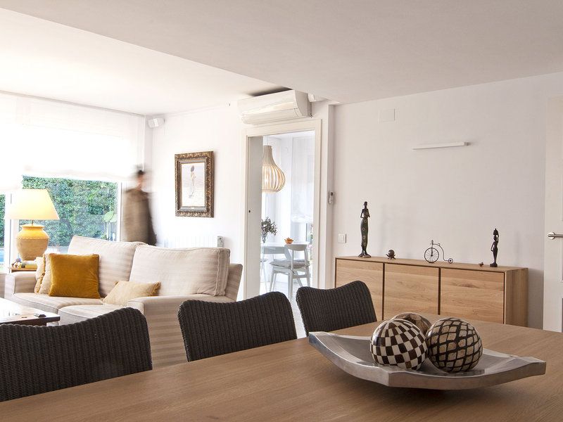 Ferestrele mari din living permit luminii naturale sa patrunda in camera, oferindu-i astfel o luminozitate sporita. Cromatica neutra permite spatiului sa respire, sa para mai curat si mai aerisit. Deschise, surprind o priveliste foarte placuta cu terasa si spatiile verzi bogate de la exterior.