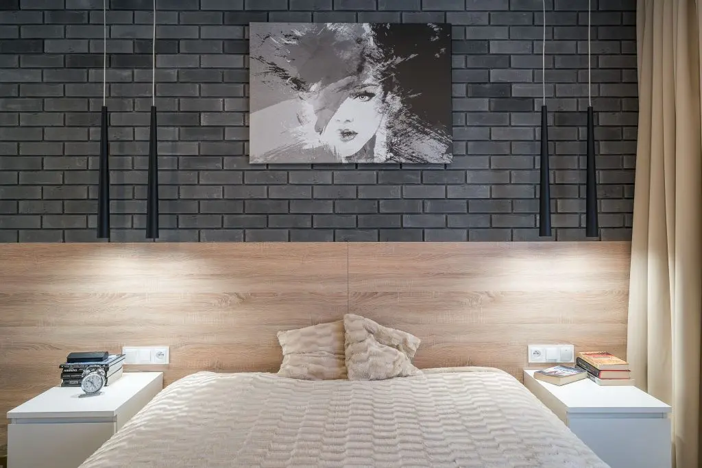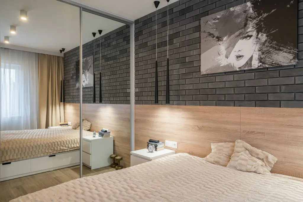 Dormitorul este ocupat in cea mai mare parte de patul matrimonial, iar Karoline a reusit sa integreze aici si un dulap pentru haine incastrat alaturi de alte spatii pentru depozitare si o zona pentru T V.