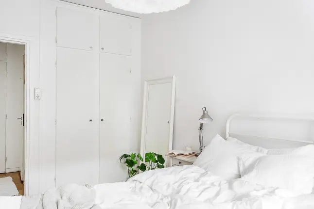 Zona de noapte cu dormitoarele ne ofera aceeasi senzatie placuta de relaxare prin cromatica si elemente simple: un pat, doua noptiere albe, un dulap incastrat in perete si o oglinda care reflecta lumina si largeste putin spatiul. Camera copilului, desi mica, ofera spatiul pentru joaca, iar accentele de culoare sunt binevenite pentru un aer vesel al incaperii.