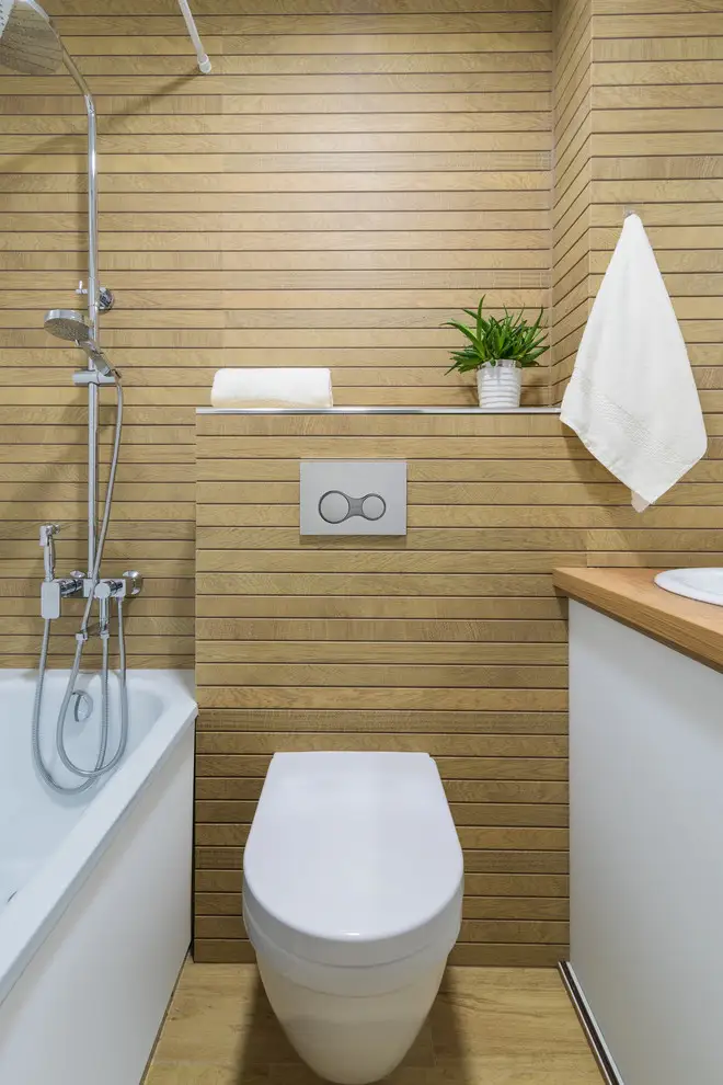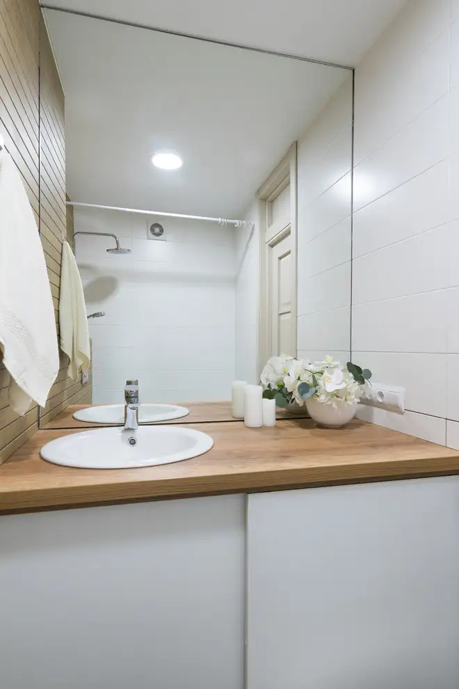 Baia se contureaza intr-un mod relaxant asemenea locatiilor dedicate si, luand forma unui spa de lux in dimensiuni reduse, aduce ca elemente predominante lemnul si plantele decorative. Design-ul este simplu si fresh si are la baza luminozitatea si largirea vizuala a spatiului.