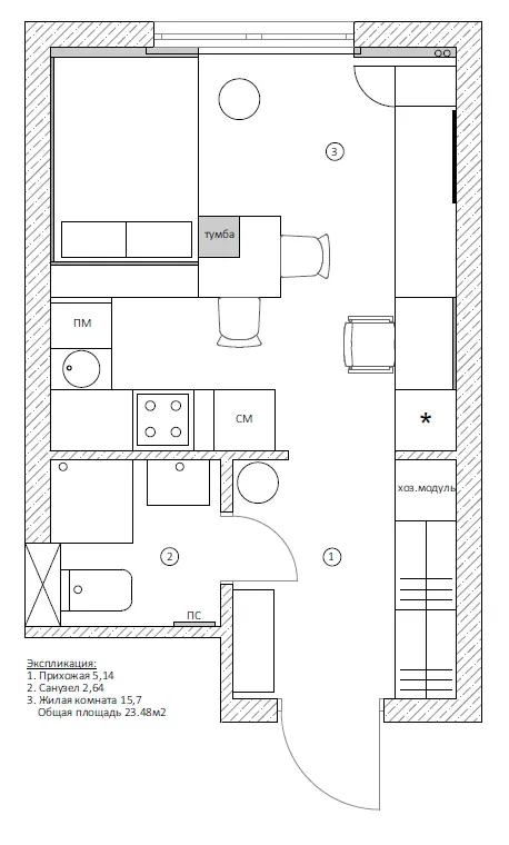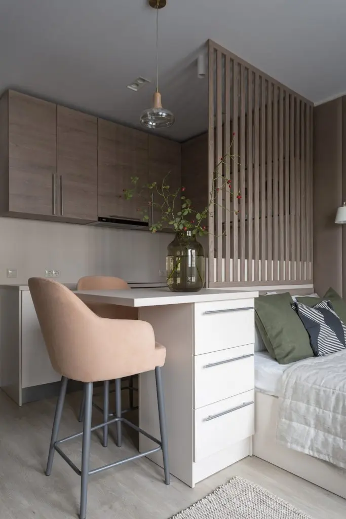 Amenajat pentru un cuplu tanar, designerul Anna Smolyakova a reusit sa integreze in acest apartament de doar 23 de metri patrati toate zonele necesare unei locuinte functionale iar prin stilul scandinav, folosind culori pastelate si tonuri neutre i-a conferit personalitate spatiului.