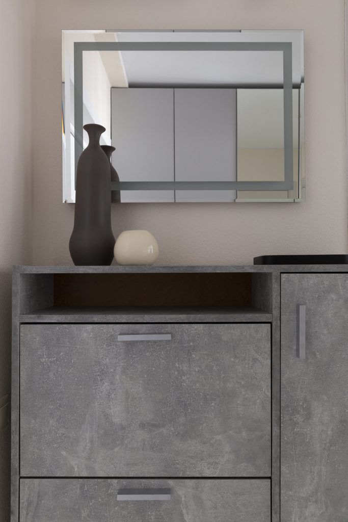 Textura de beton, nuantele de gri, accesoriile aurii, covoarele texturate adauga varietate amenajarii. Ritmul de elemente verticale confera proportiilor spatiului un echilibru necesar in timp ce accentele de gri inchis creeaza contrast.