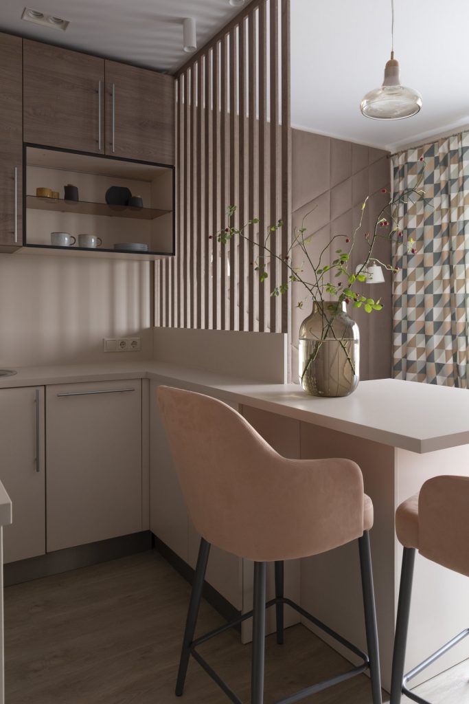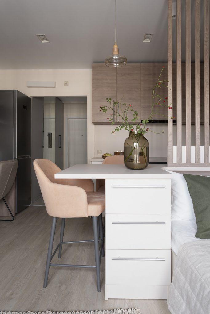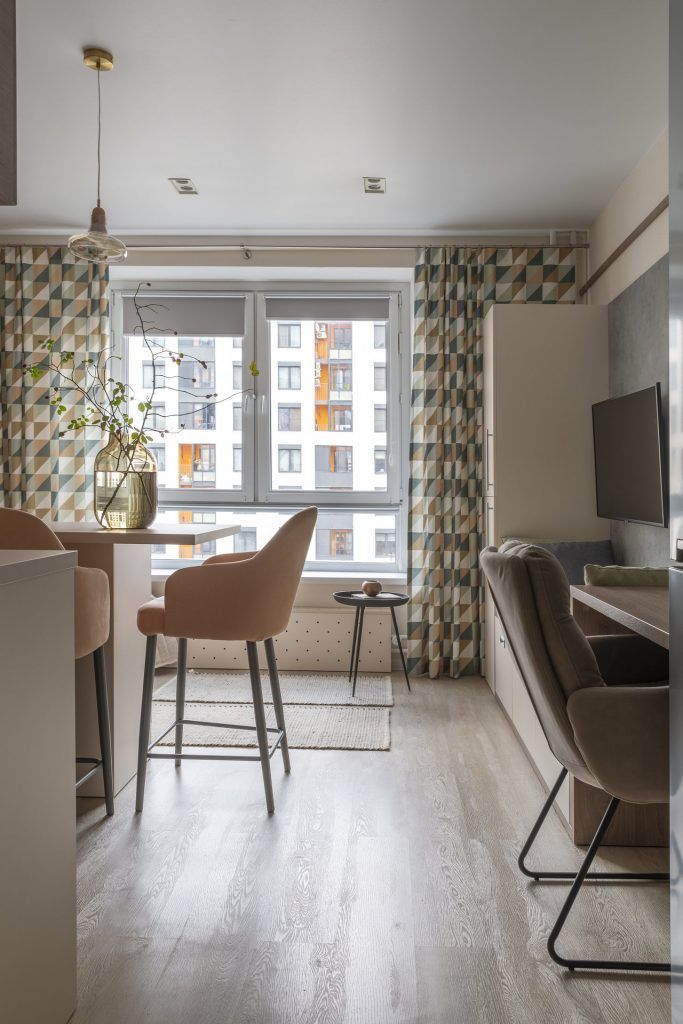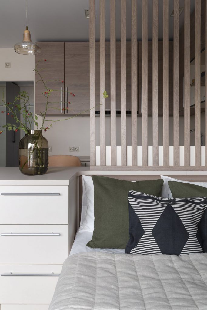 Amenajat pentru un cuplu tanar, designerul Anna Smolyakova a reusit sa integreze in acest apartament de doar 23 de metri patrati toate zonele necesare unei locuinte functionale iar prin stilul scandinav, folosind culori pastelate si tonuri neutre i-a conferit personalitate spatiului.