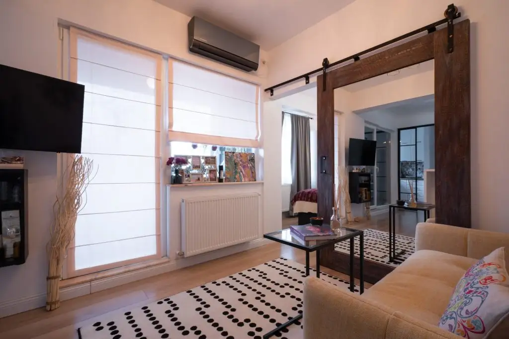 Pe langa rolul de separare al zonelor pe care aceasta usa il detine, nu trebuie omis faptul ca accesorizeaza estetic dar si functional intreaga locuinta, fiind prevazuta cu o oglinda de mari dimensiuni.