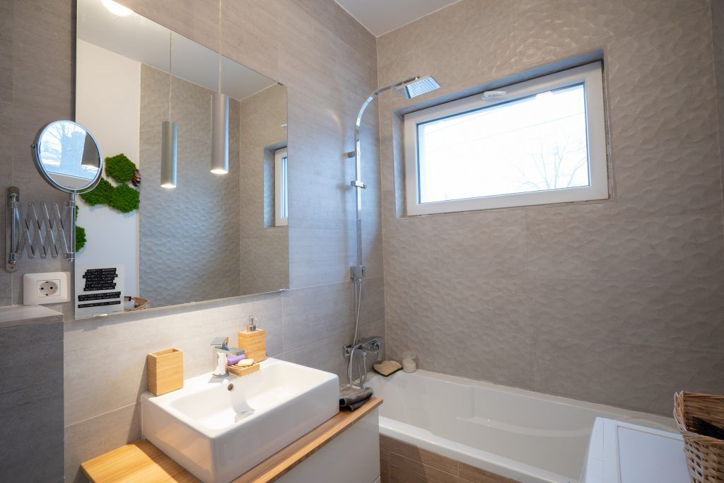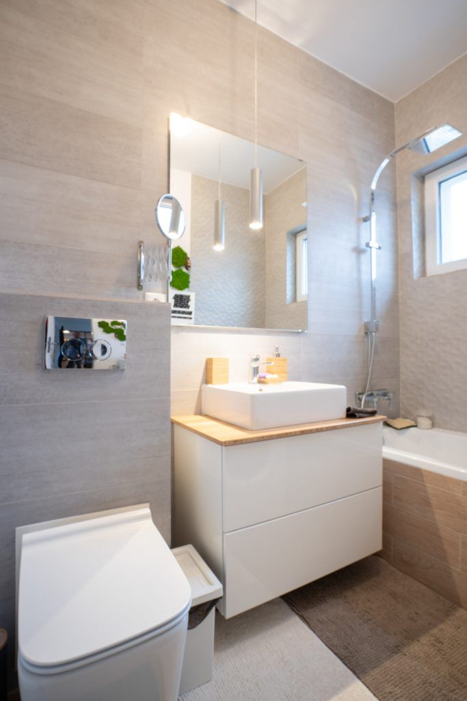 In cazul baii, simplitatea si naturaletea sunt cele doua puncte forte. Beige-ul, lemnul natural si accentele de verde, dau senzatia de prospetime si maresc vizual intreaga incepere. In ceea ce priveste corpurile sanitare si componentele de iluminat artificial, abstractul modern este cel care isi pune amprenta, conturand intr-o maniera minimalista un spatiu functional si relaxant.