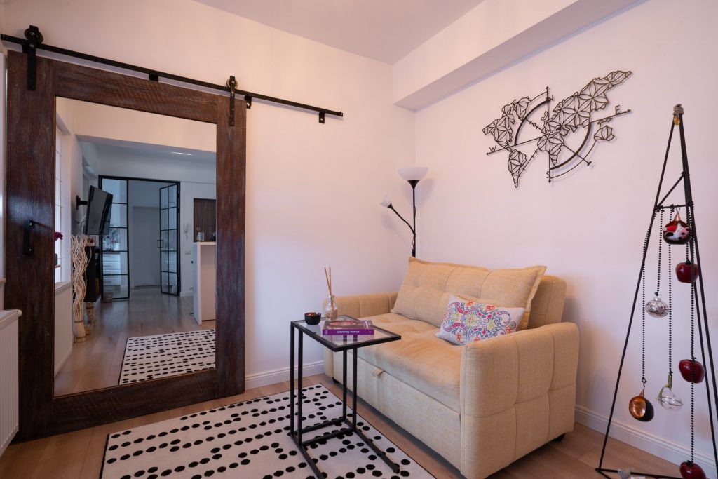 Pe langa rolul de separare al zonelor pe care aceasta usa il detine, nu trebuie omis faptul ca accesorizeaza estetic dar si functional intreaga locuinta, fiind prevazuta cu o oglinda de mari dimensiuni.